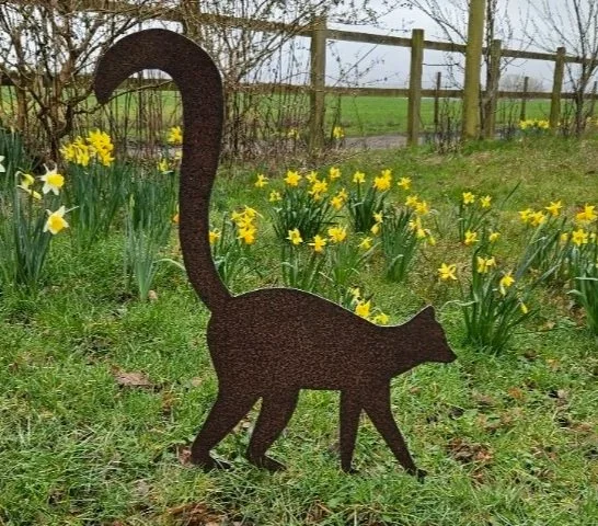 Life sized leaping cat (65cm nose to tail). 3mm steel that will develop an attractive rusty patina as it ages. £35. Can be posted.